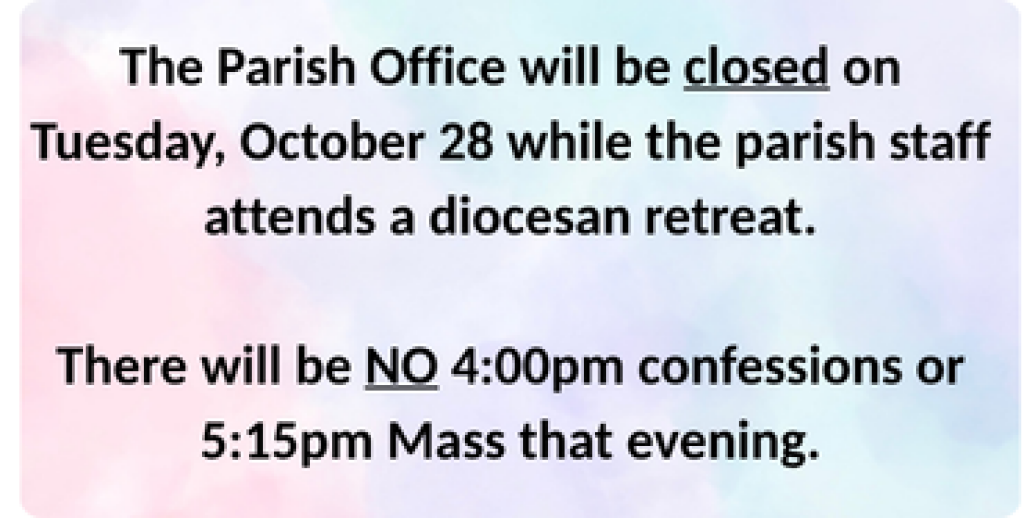*The Parish Center is closed from 12:00pm-1:00pm for lunch *
